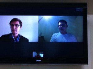 - Local TV interviewing participants during the break